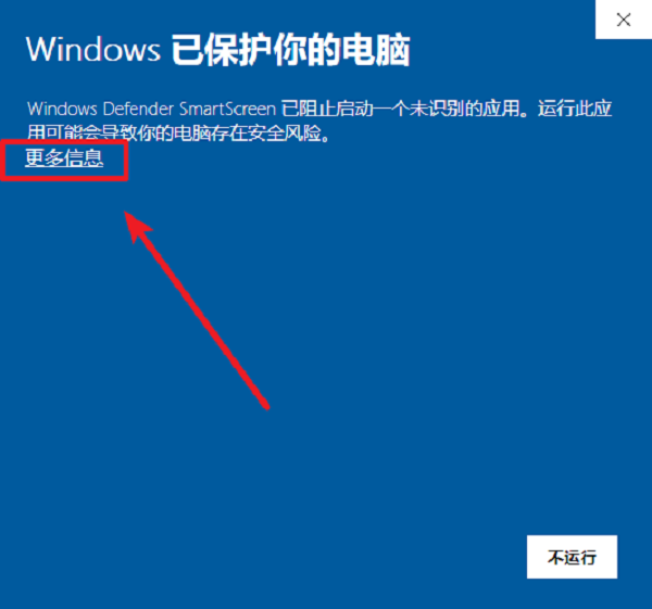 没有有效的数字签名,因此 SmartScreen 会弹出提示,请点击「更多信息」,然后选择「仍要运行」。
