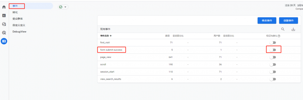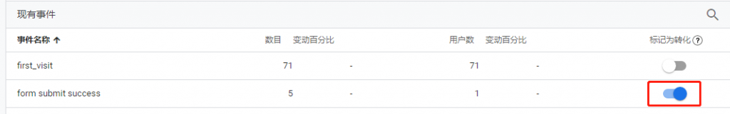 这个时候需要等,预计24小时之内,GA4事件中会出现 “form submit success”,将其标记为“转化”;