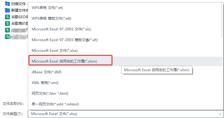 首先需要将文件另存为可启用宏的工作表(不然后续无法启动宏编辑器)