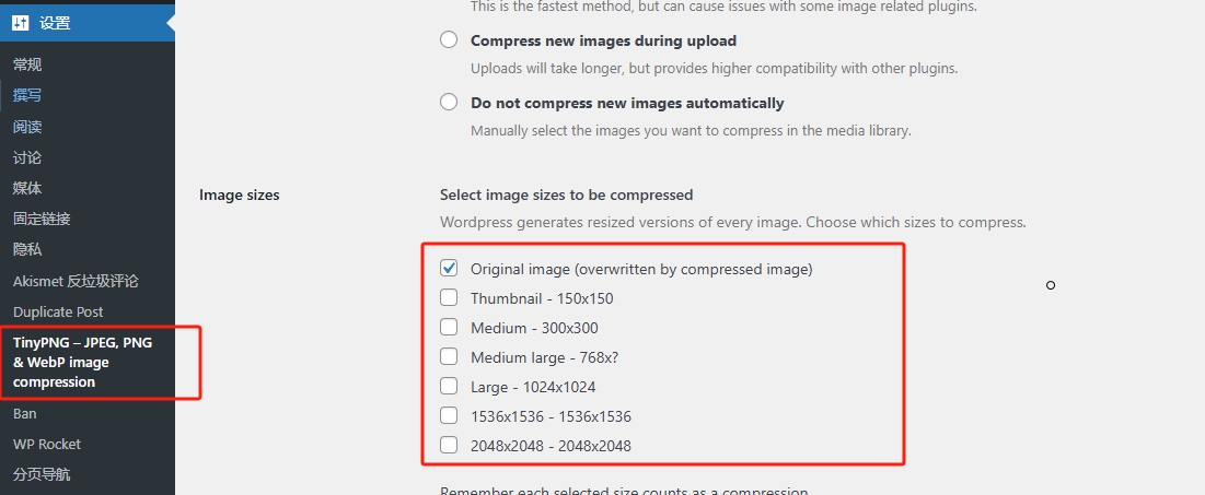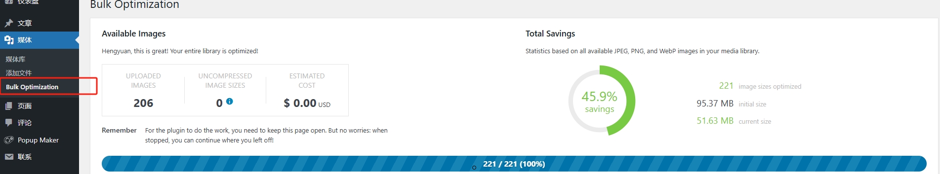加速您的网站。使用 TinyPNG 自动优化您的 JPEG、PNG 和 WebP 图像。该插件主要是用于压缩图片。可批量压缩已经上传的图片(免费版本,每个月500张),需要自己注册账号获取API(免费)。压缩时可通过设置选择只压缩原图片。